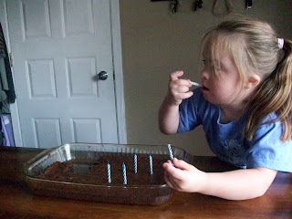 Jennifer has it figured out with cake that when you take the candles out there is frosting on them, not quite the same with brownies, but it was worth a try.